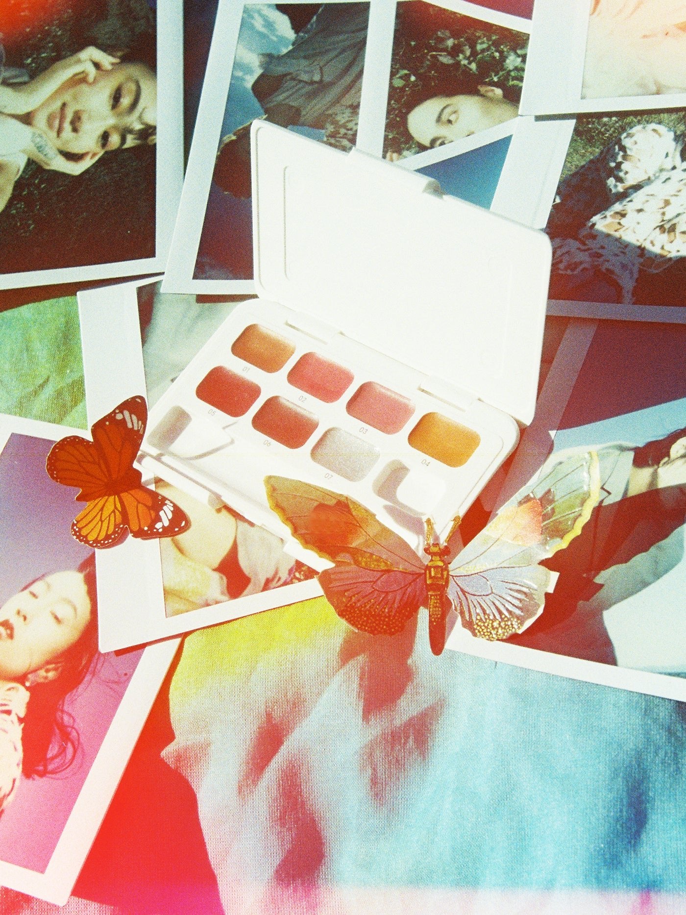 7色がひとつになったミニサイズのパレット。唇にも目元にも。
