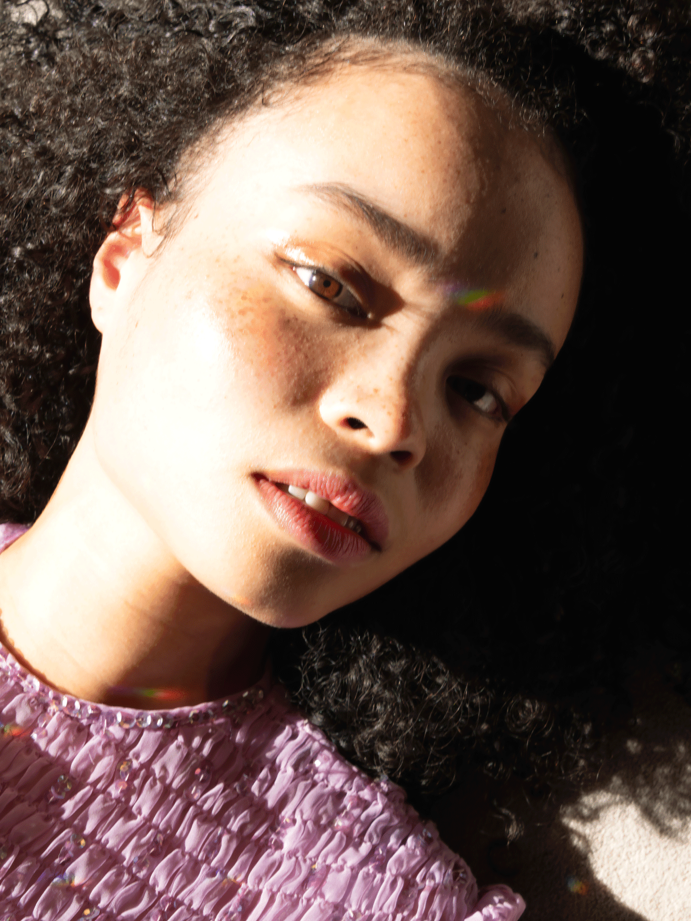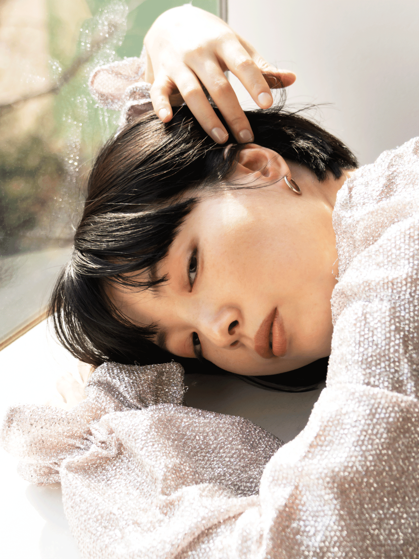 ミルクティーのようなやさしいヴェールが、いつもの自分より紅潮した頬、くちびる、目元、アイブロウ、そして表情へ導いてくれる新色「DAY」。eriさんとのコラボレーションカラーです。