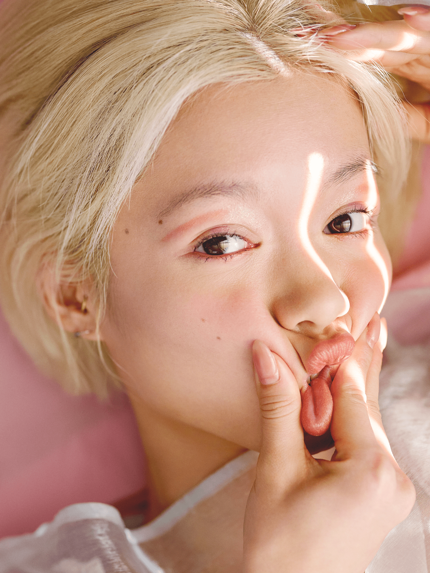 裸の心に寄り添うようなピーチベージュカラーは、光を帯びるとイエローラメが大胆にきらめき、顔全体にいきいきとした血色感と立体感を与えます。